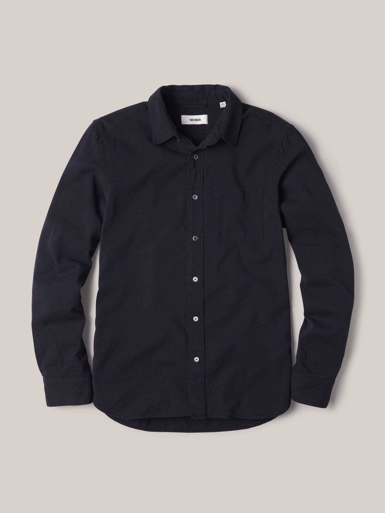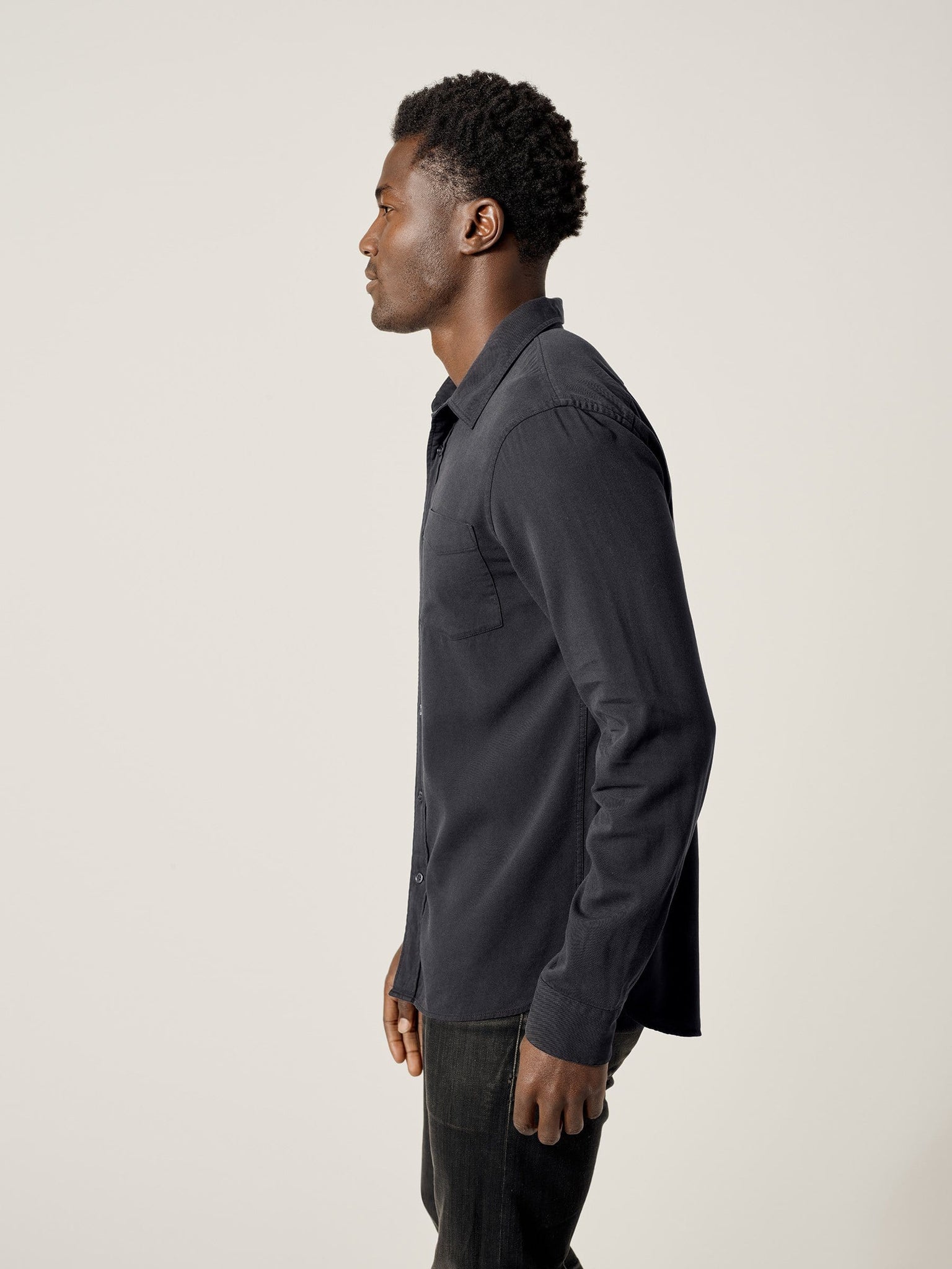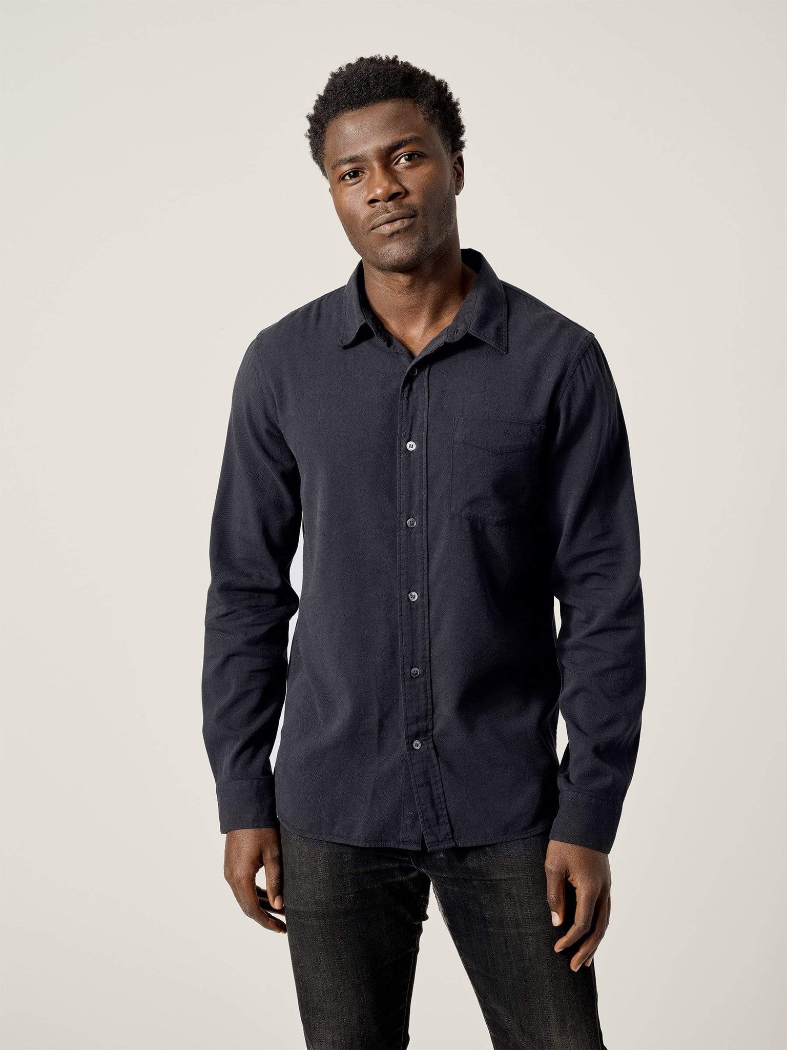 Roomy up top and slim through the body, this lightweight, silky button-up hangs loosely from the body. This shirt leans toward informal, with bona fide shell buttons, no collar buttons, and a mid-length hem that would just as rather go untucked.