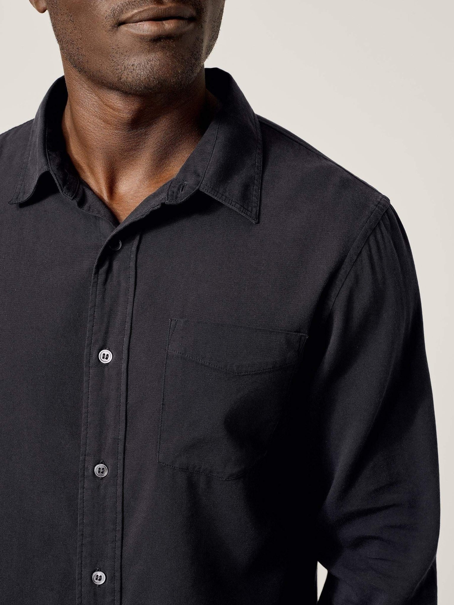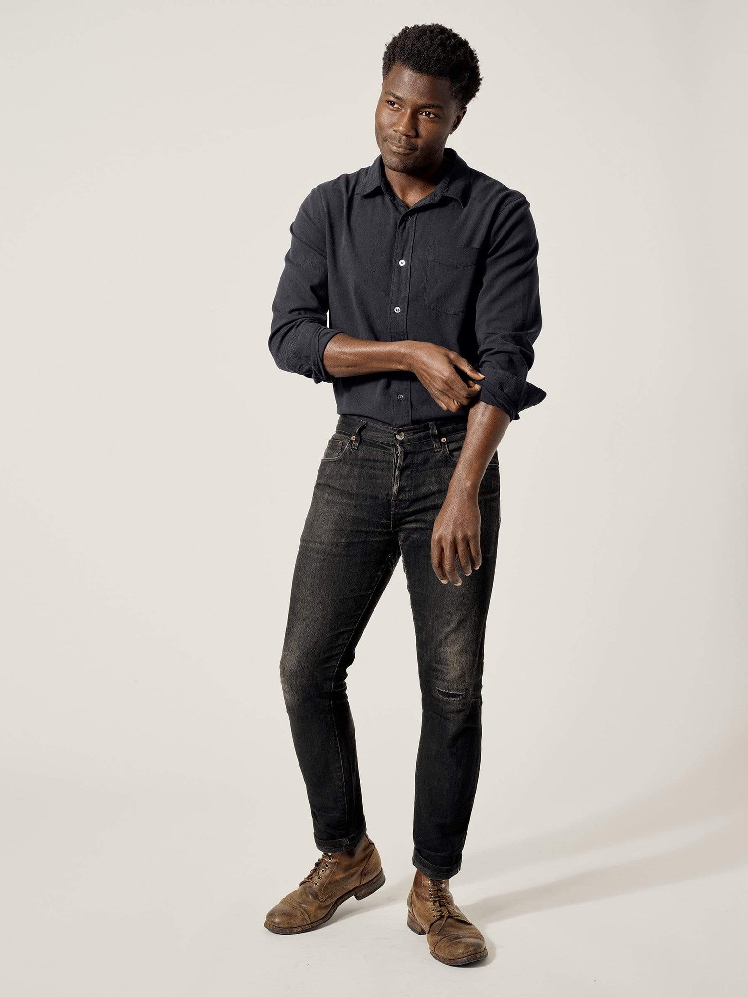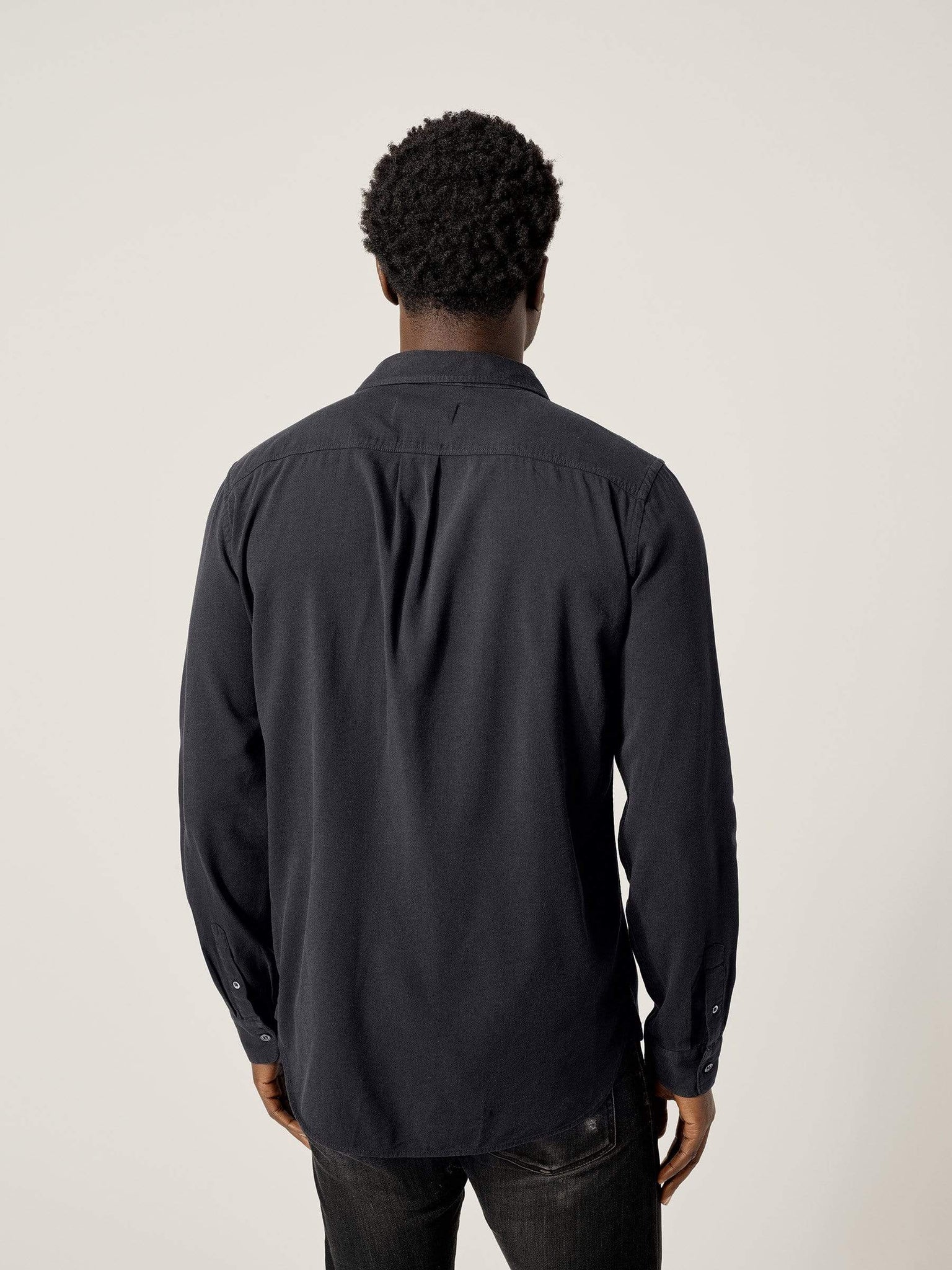Roomy up top and slim through the body, this lightweight, silky button-up hangs loosely from the body. This shirt leans toward informal, with bona fide shell buttons, no collar buttons, and a mid-length hem that would just as rather go untucked.