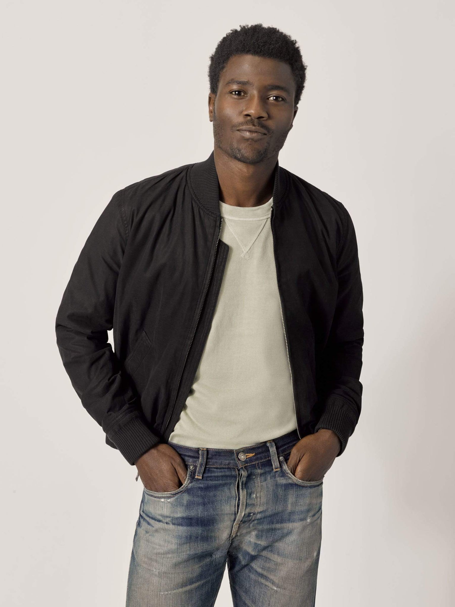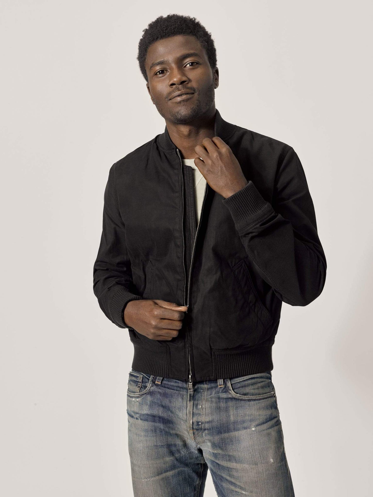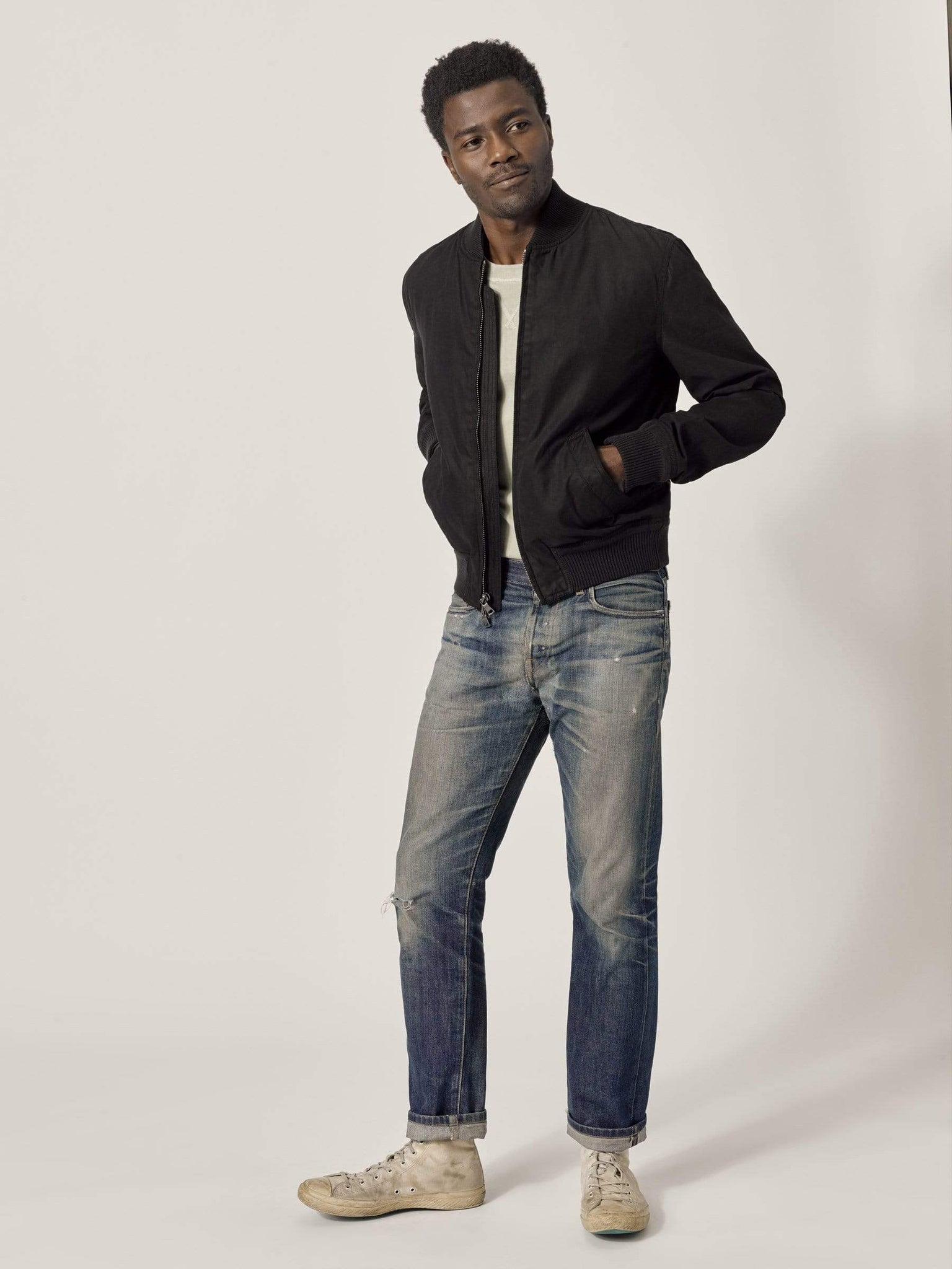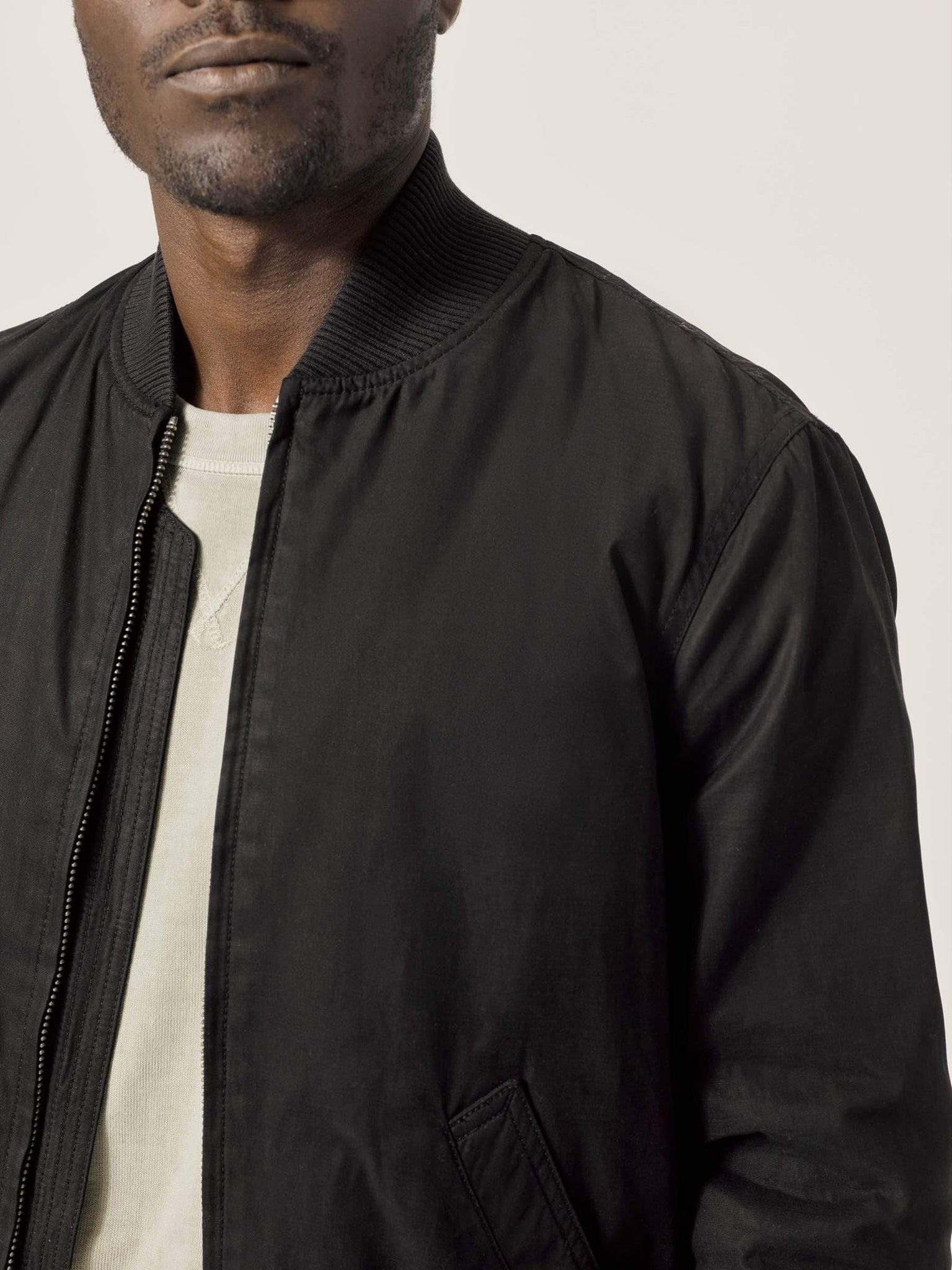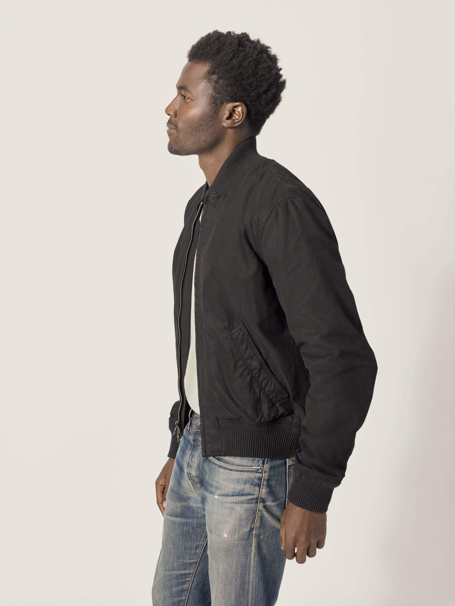 A fully-lined, full-fitting bomber jacket cut from lightweight, blended fabric with a water repellent waxed finish. We love the time-tested silhouette of a bomber, but we wanted to make it in a year-round fabric. This style comes with angled hip pockets (with soft, corduroy pocket bags), articulating, 2-piece sleeves with elbow pleats (for added mobility), and a comfortable, quilted lining. We cut this jacket in a lightweight blended fabric with a wax finish, and heat-gunned the seams for added water-repellency. It’s got all the style of an old-school bomber, with a fraction of the bulk.