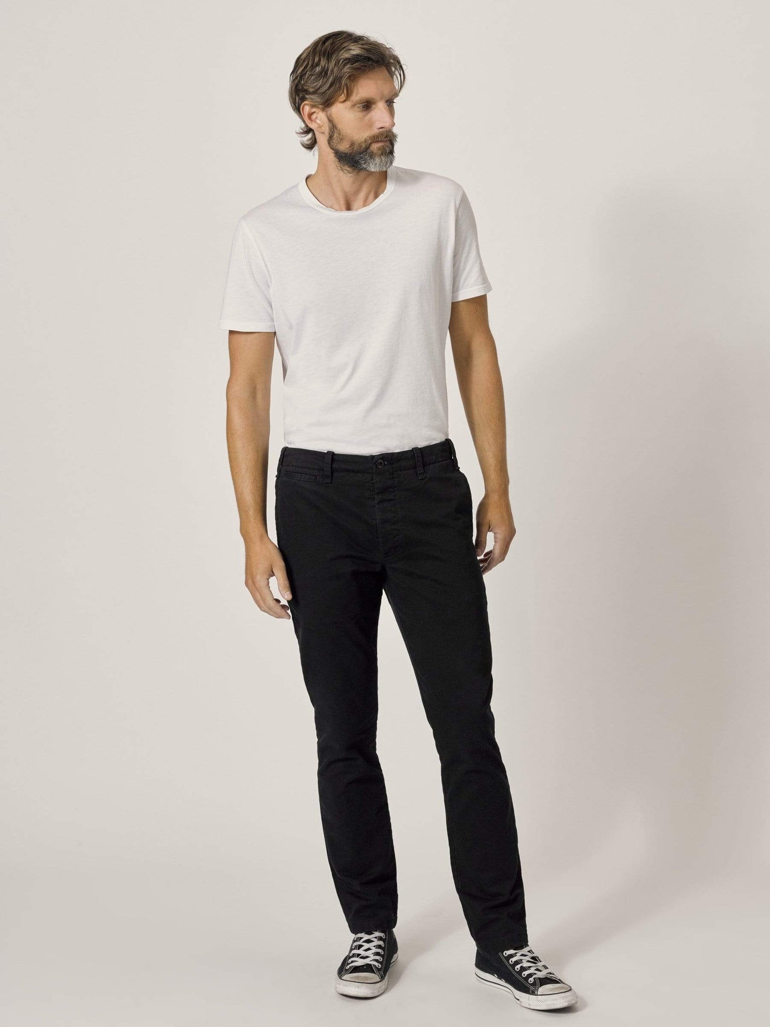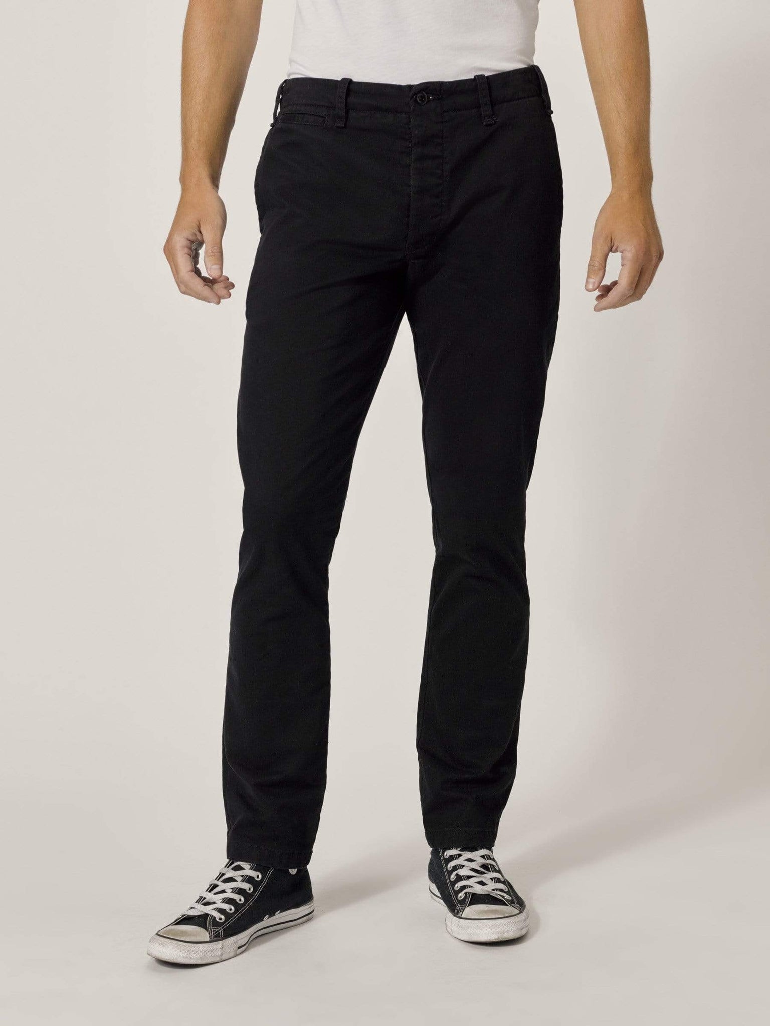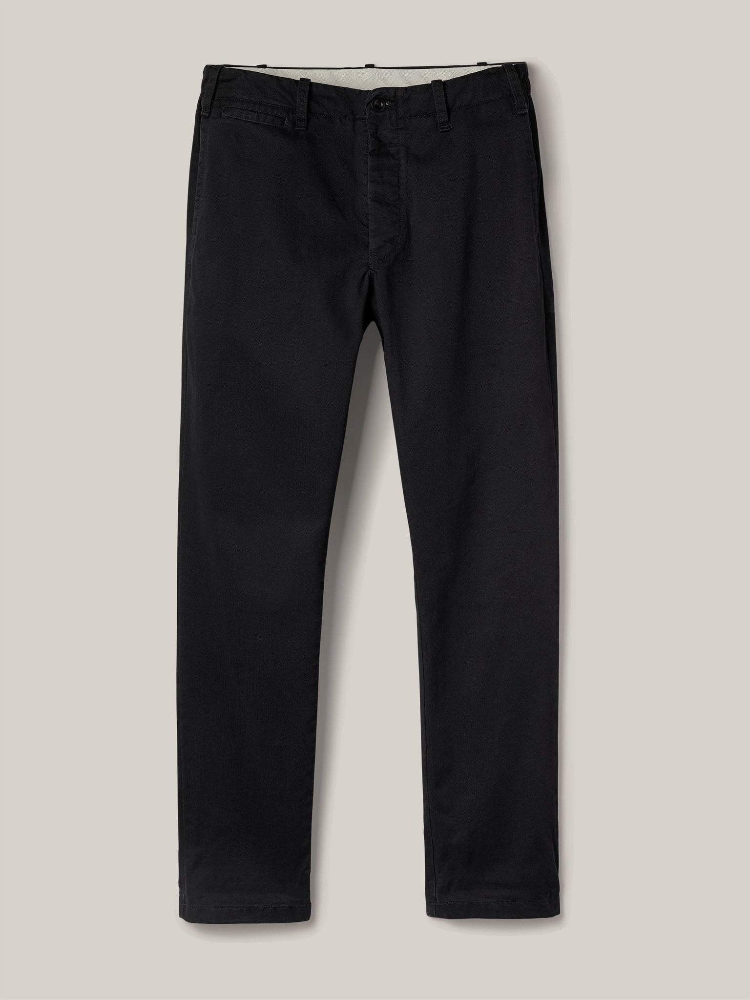 A mid-rise, slant-pocket tapered trouser in soft, textured cotton. Twill is in the same family as denim and khaki, but this fabric flows a little more. This is a tailored, button-fly trouser rendered in a soft, informal fabric.