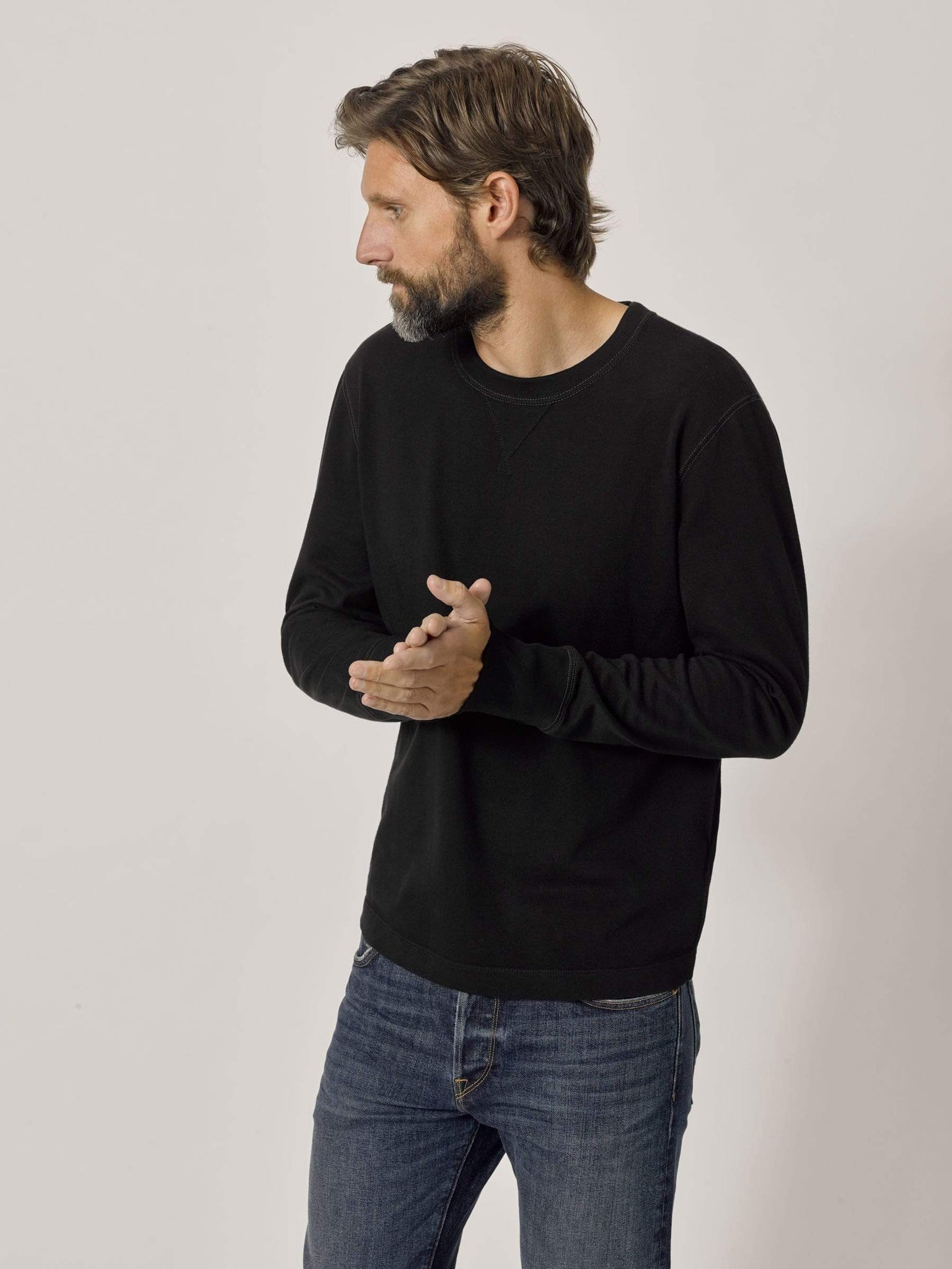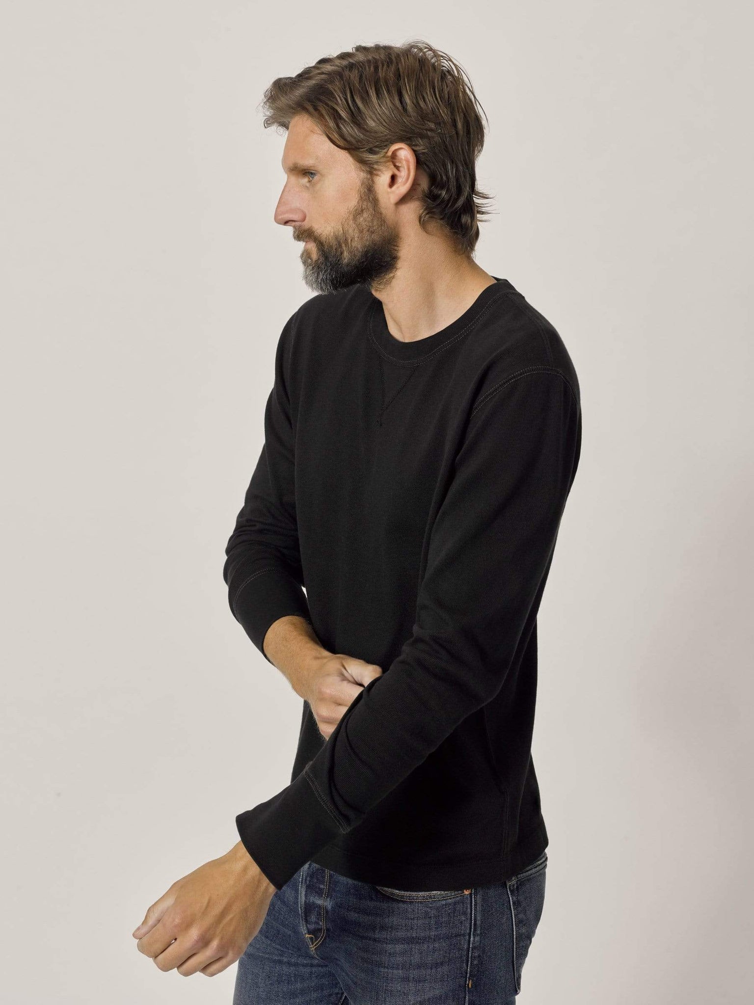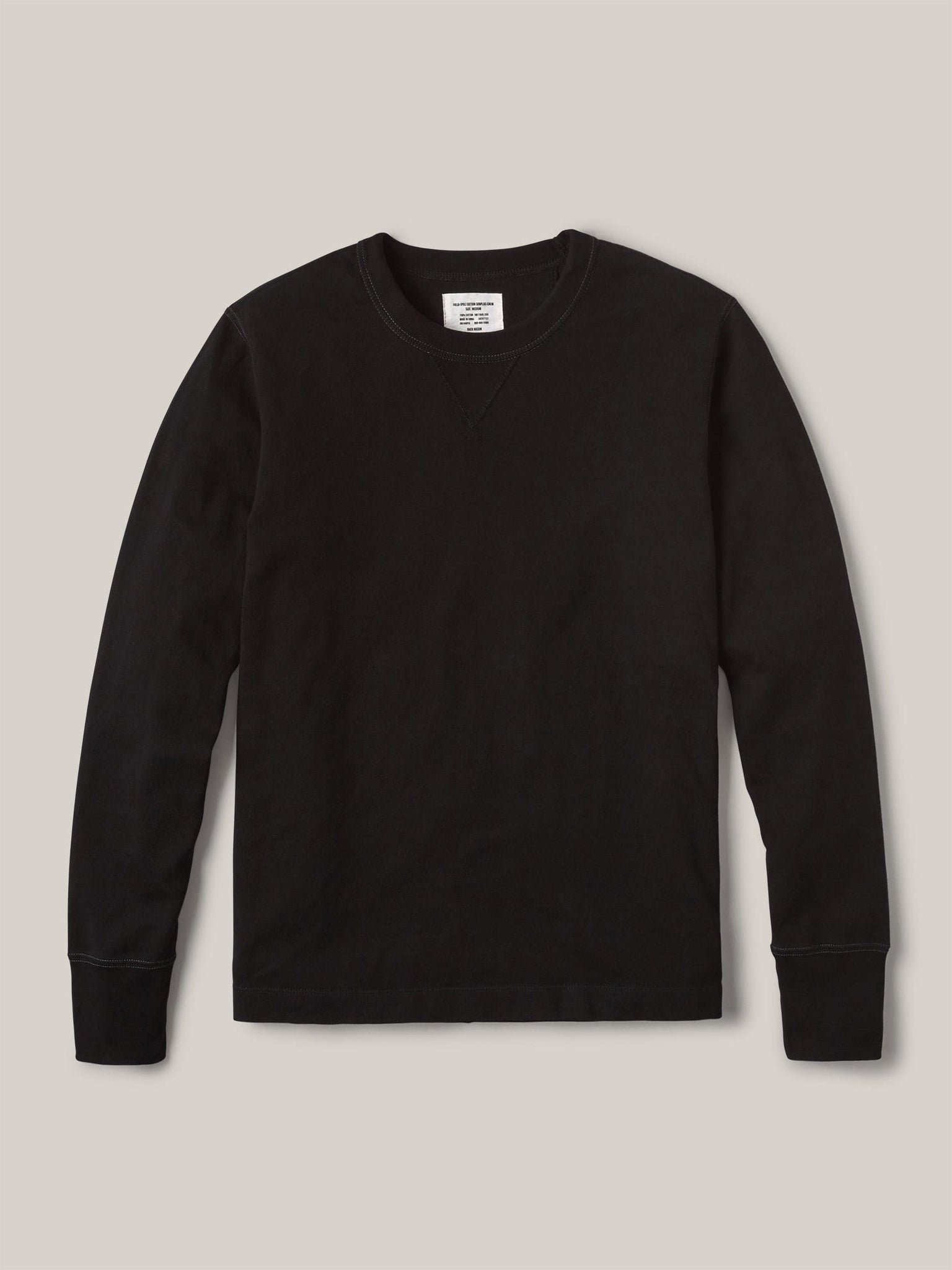 A loose-cut, long sleeve, heavy weight cotton tee, modeled after a vintage athletic shirt. The soft, cotton jersey is about three times heavier than our Pima tee. This is a solid, substantial base-layer for colder weather.