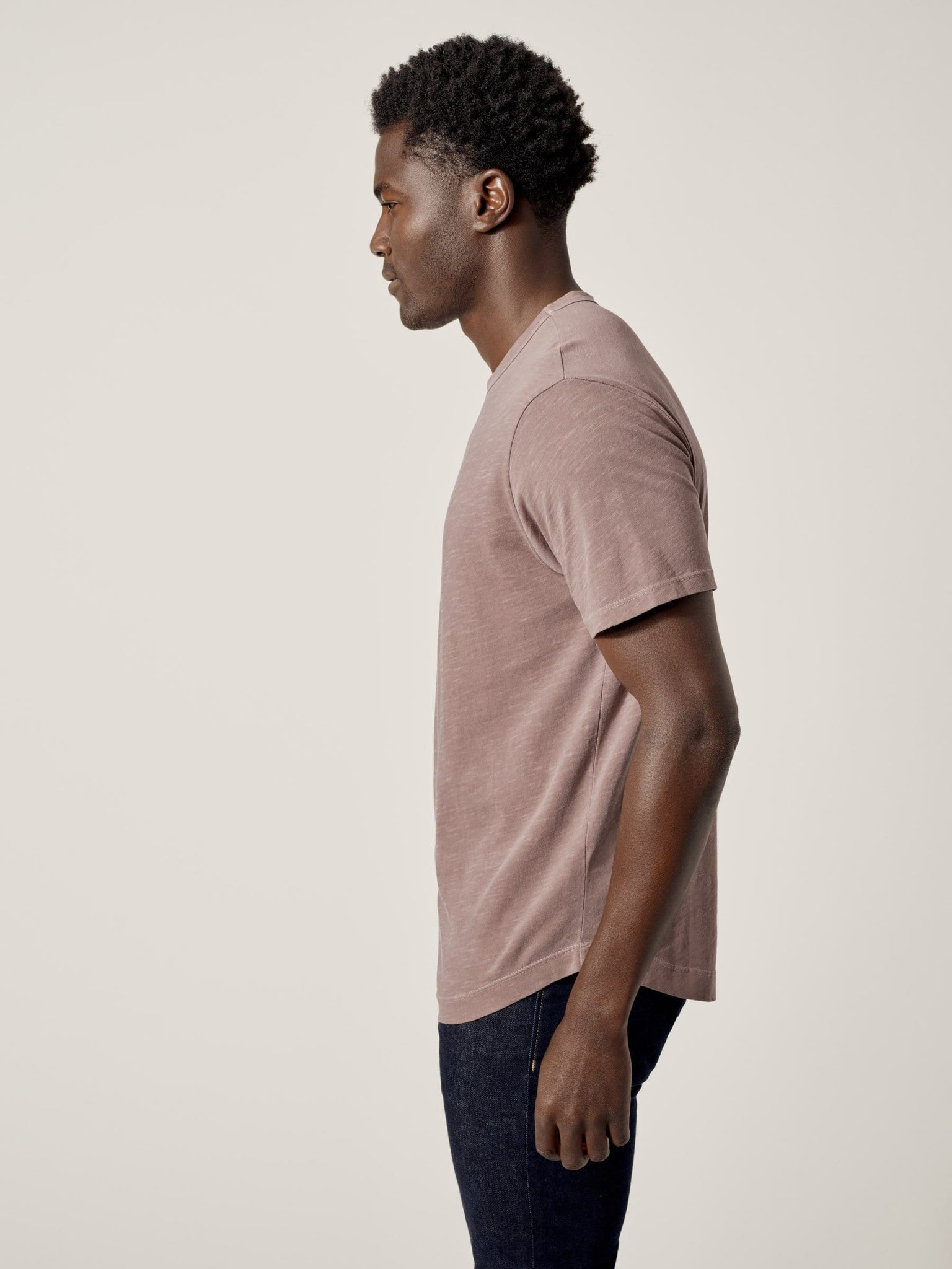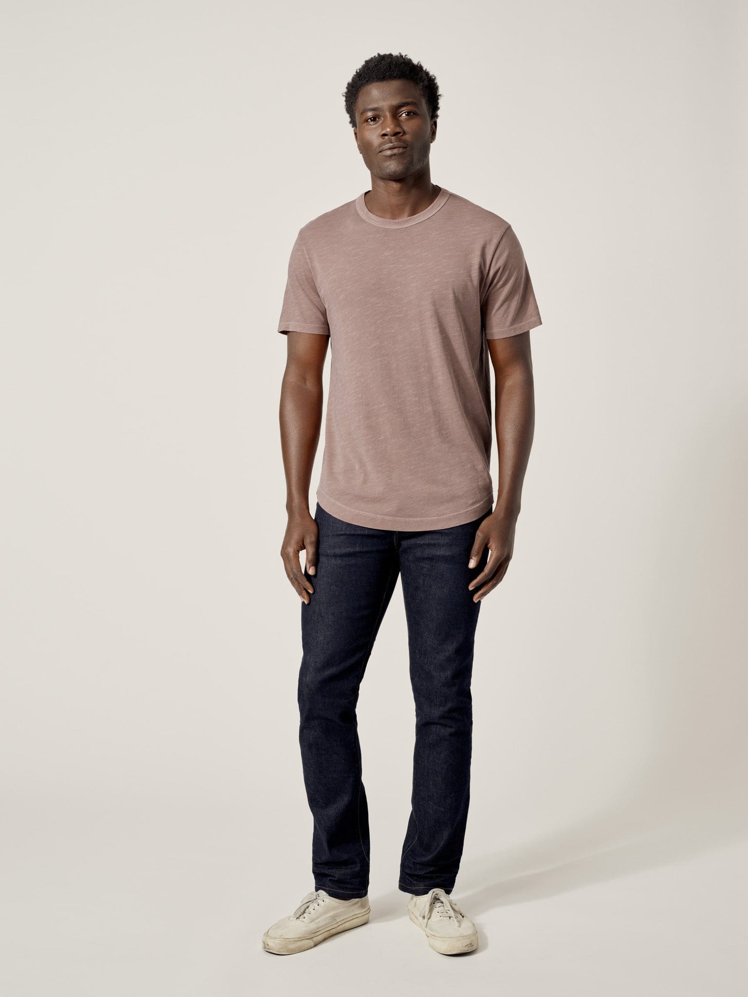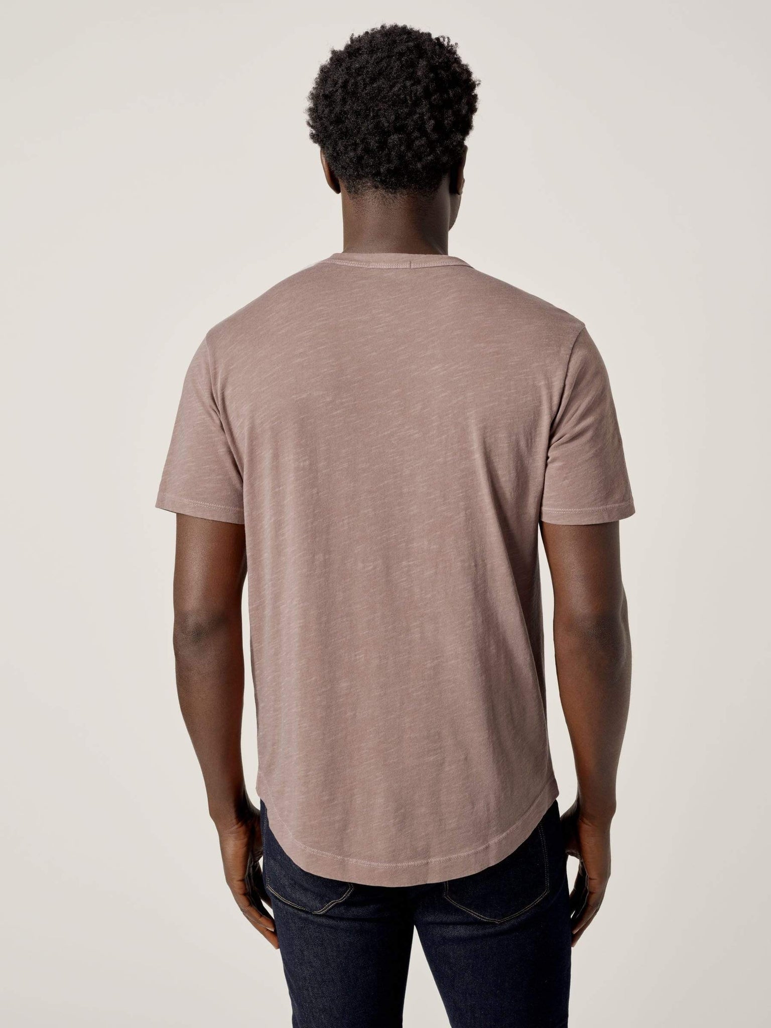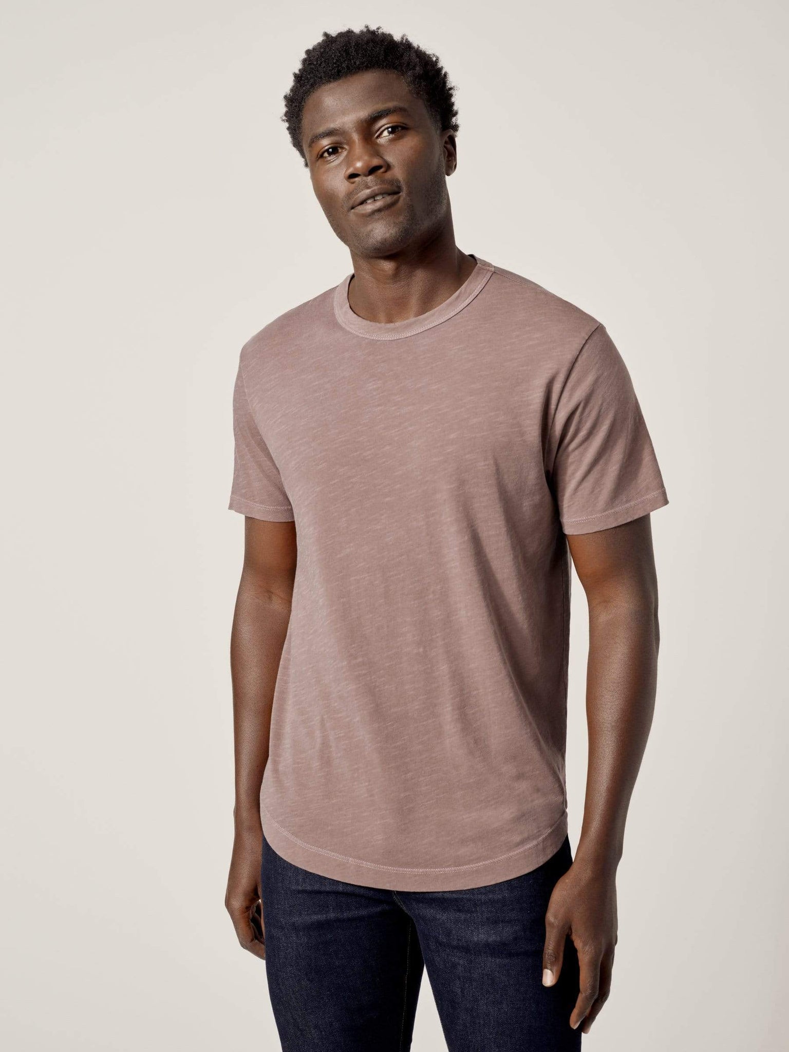 Our slub curved hem tee is built from beautiful 100% slub cotton. Slub is a lightly textured fabric made on small batch, low-tension looms. The neck opening leaves room to breathe, while the rounded shirttail lends a tailored look to an everyday essential.