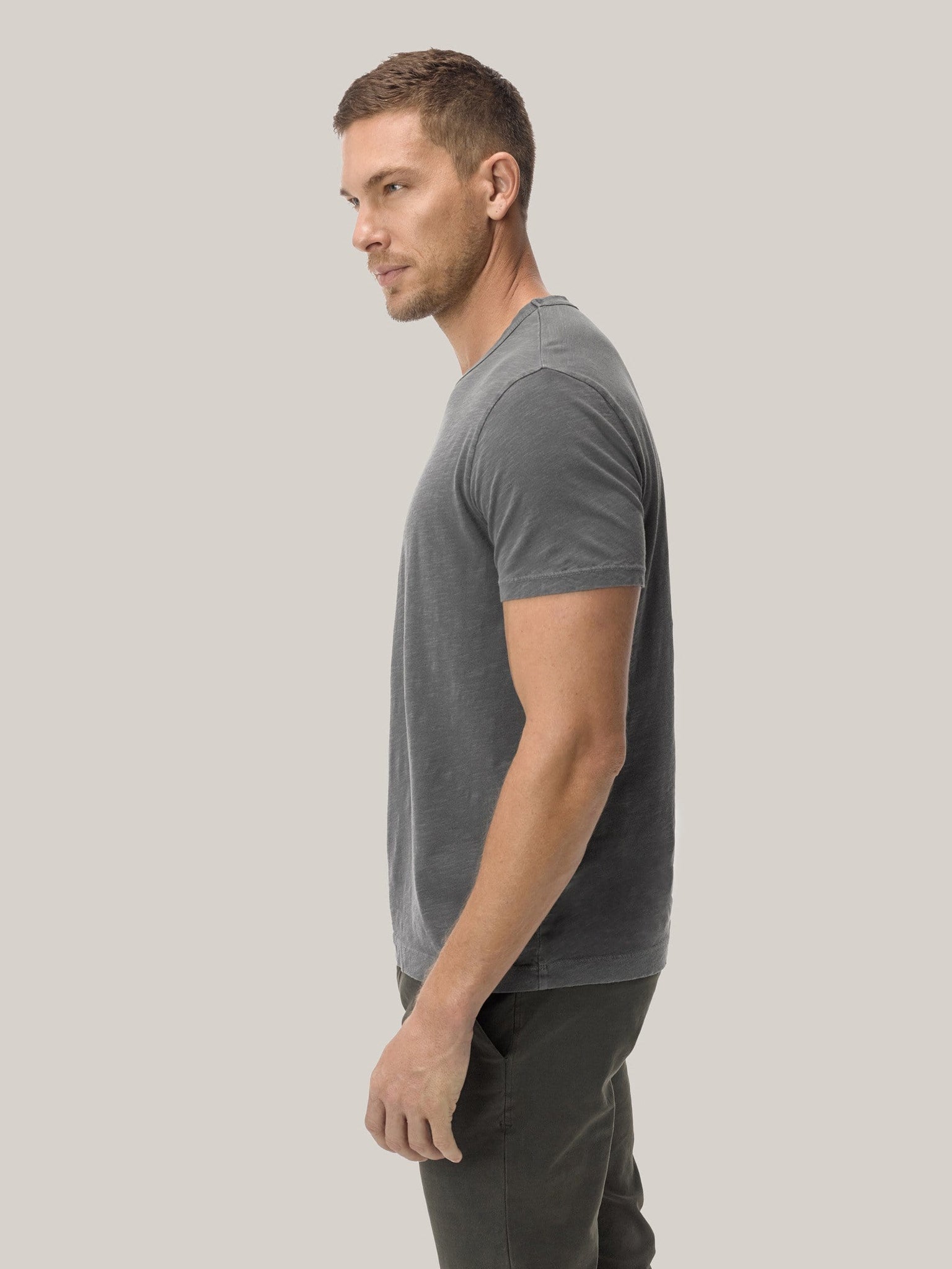 Our 100% slub cotton, textured T-shirt washed for softness and designed with a vintage-inspired straight hem. It’s a new tee that looks and feels a lot like your old favorites. We were always taught not to mess with the classics, so we made our tees to honor those of generations before.