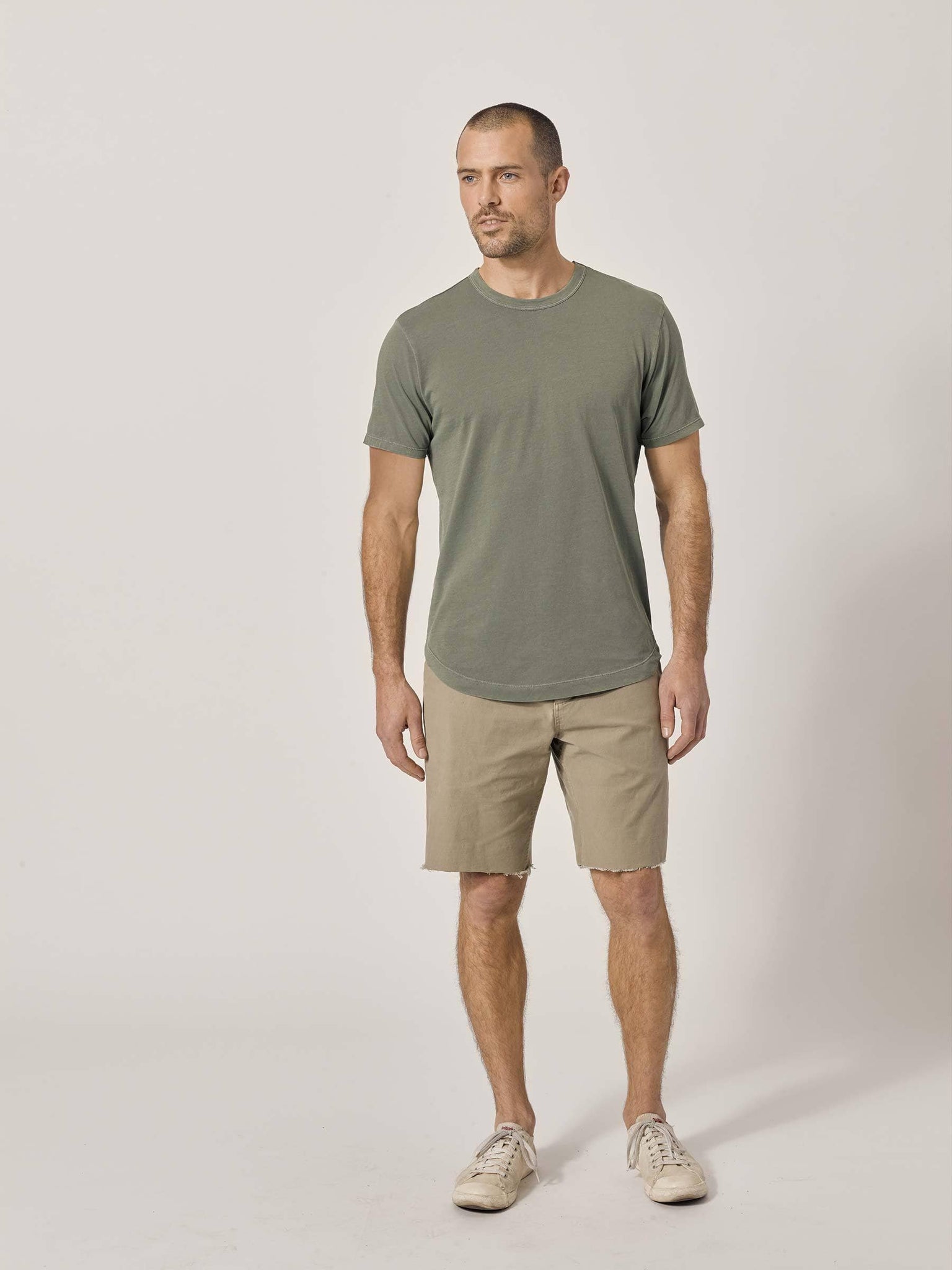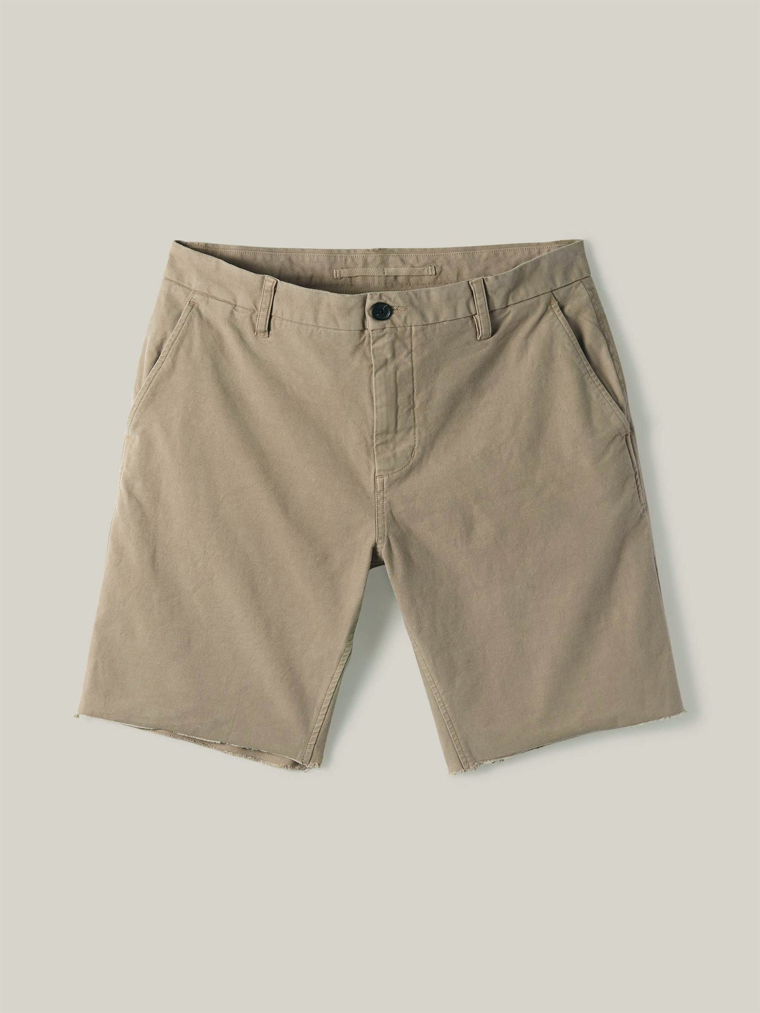 If you like our Broken Twill Trouser, this is the short version. The raw hem hits just above the knee for a tasteful length you can wear all summer. Cut from durable, long-strand cotton, the fabric is sanded on both the face and the self-side, opening up the fibers for total softness. 2% stretch means you can step out of a boat or tie your shoes without ever having to worry about a split.