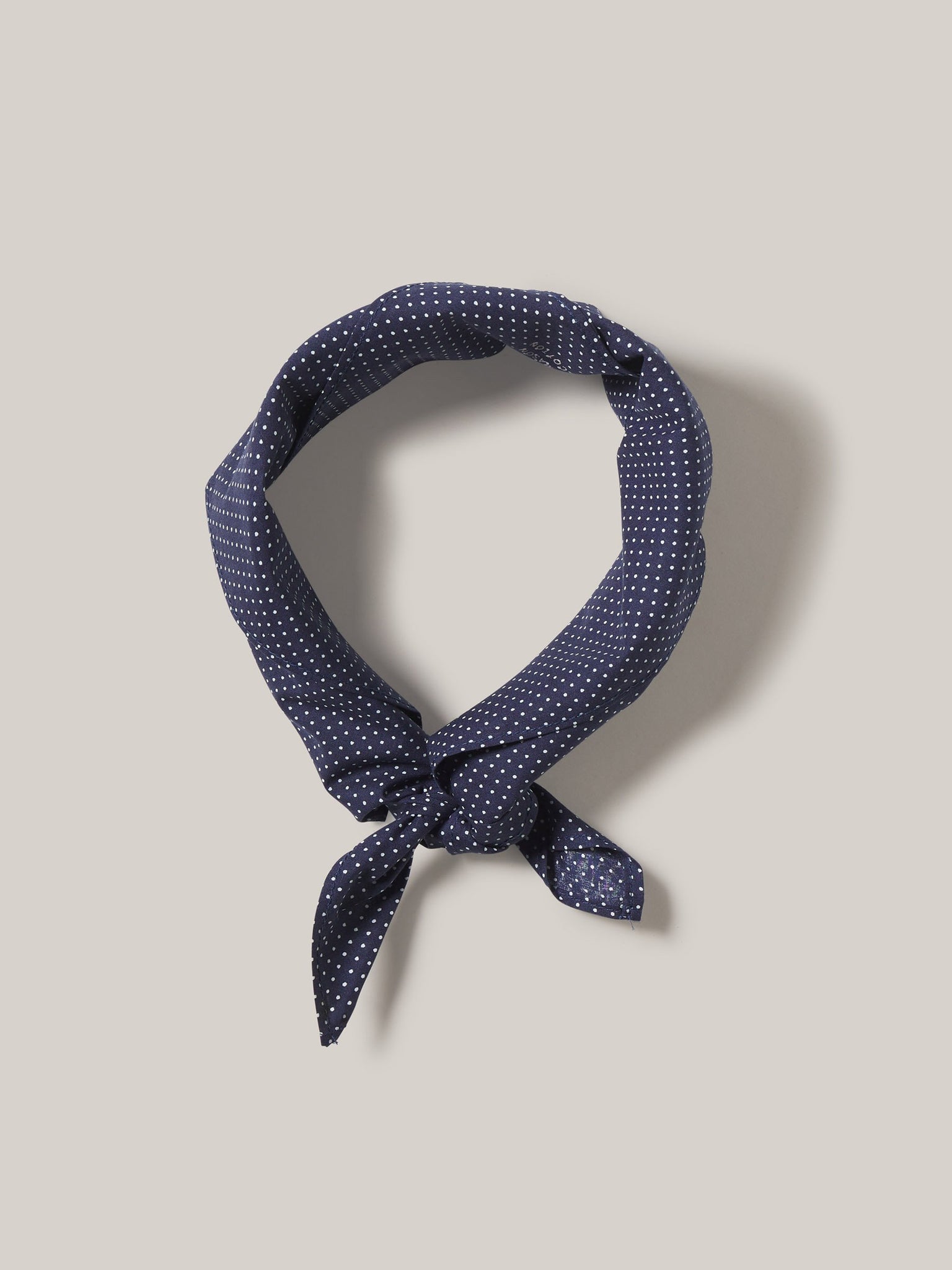 This bandana is cut from organic, GOTS-certified cotton. Milled in Japan, the tightly woven Poplin fabric balances total softness with breathability for all-day wear. This iteration features a rotary-printed polka dot that will fade and weather over time.