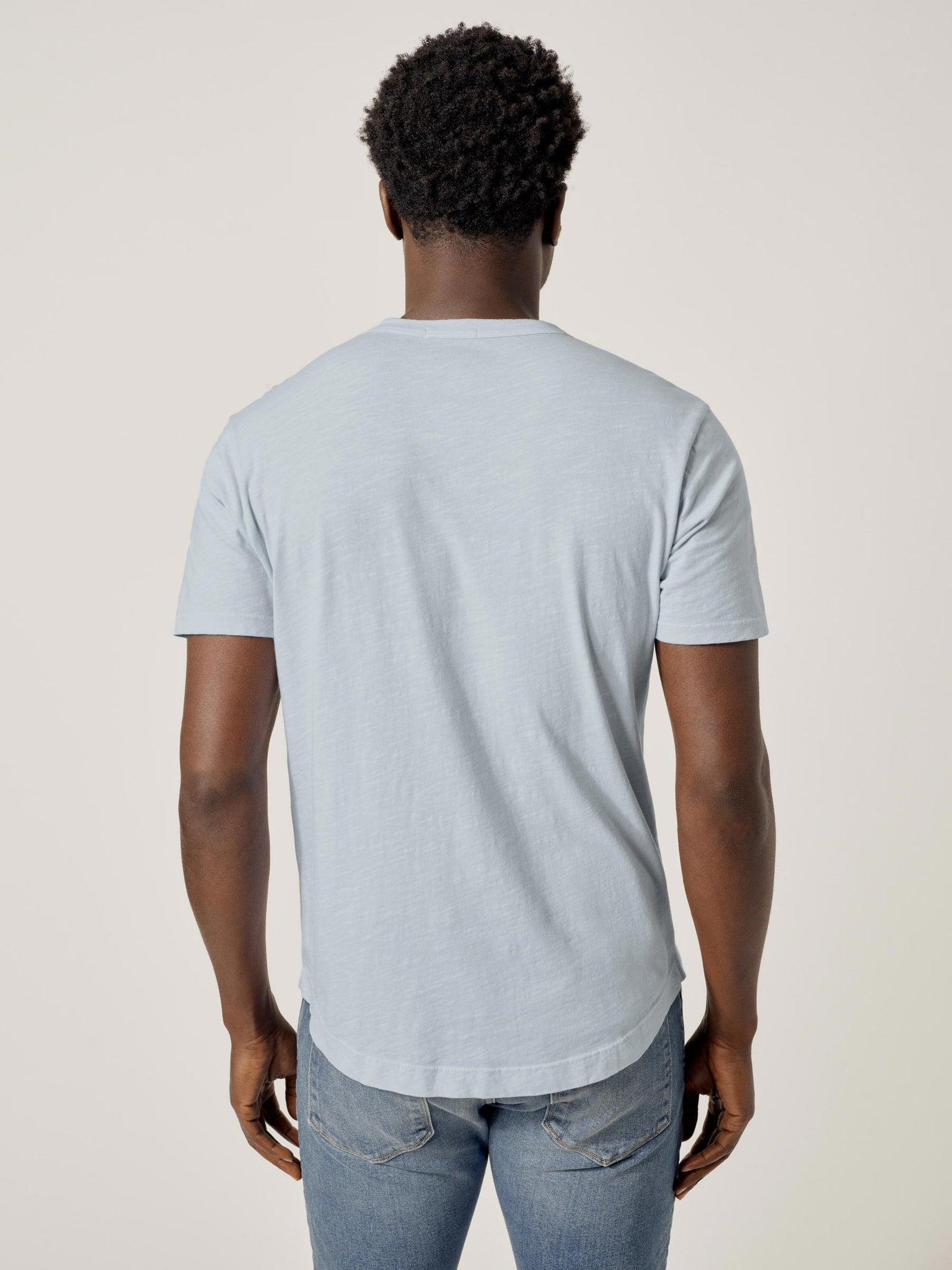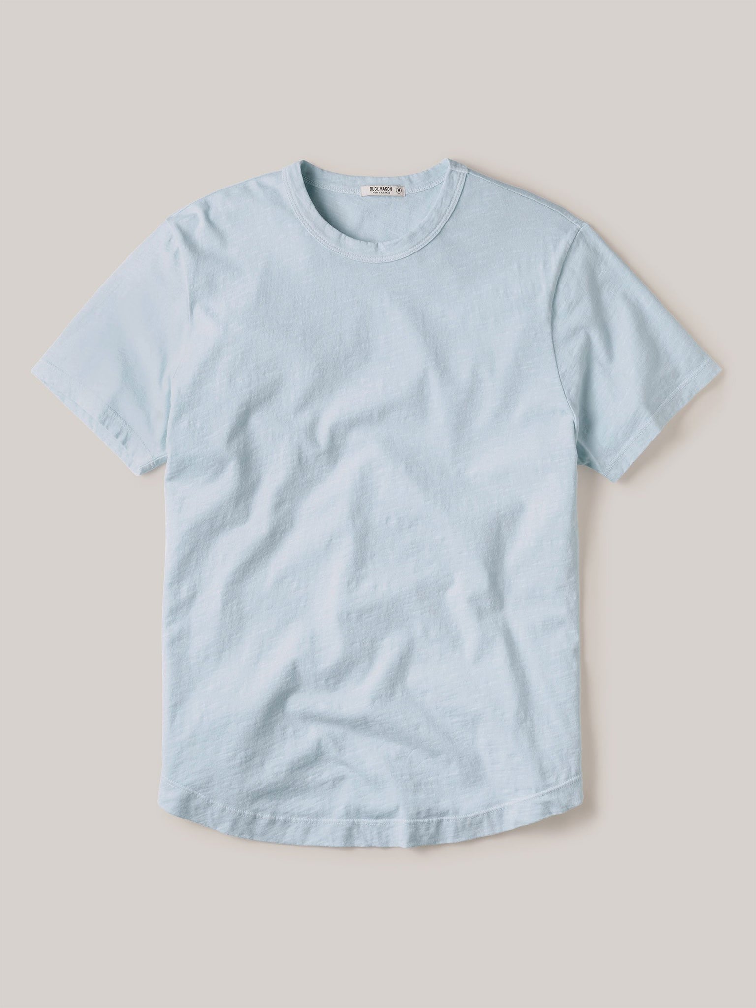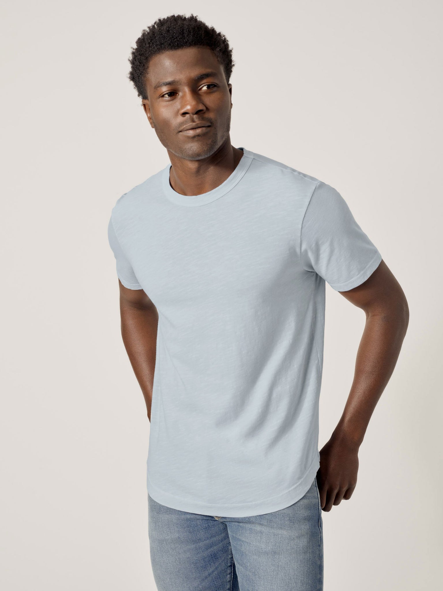 Our slub curved hem tee is built from beautiful 100% slub cotton. Slub is a lightly textured fabric made on small batch, low-tension looms. The neck opening leaves room to breathe, while the rounded shirttail lends a tailored look to an everyday essential.