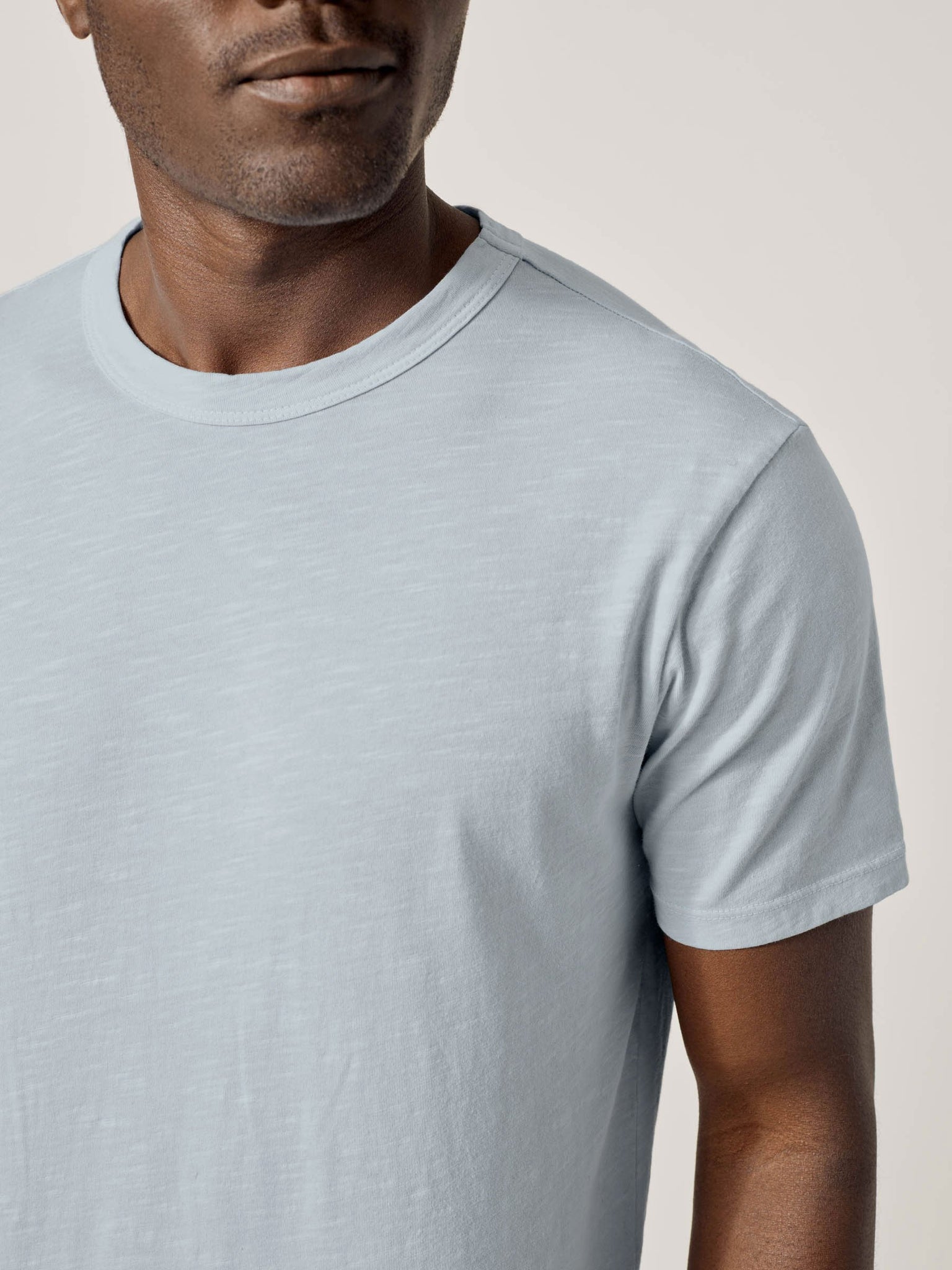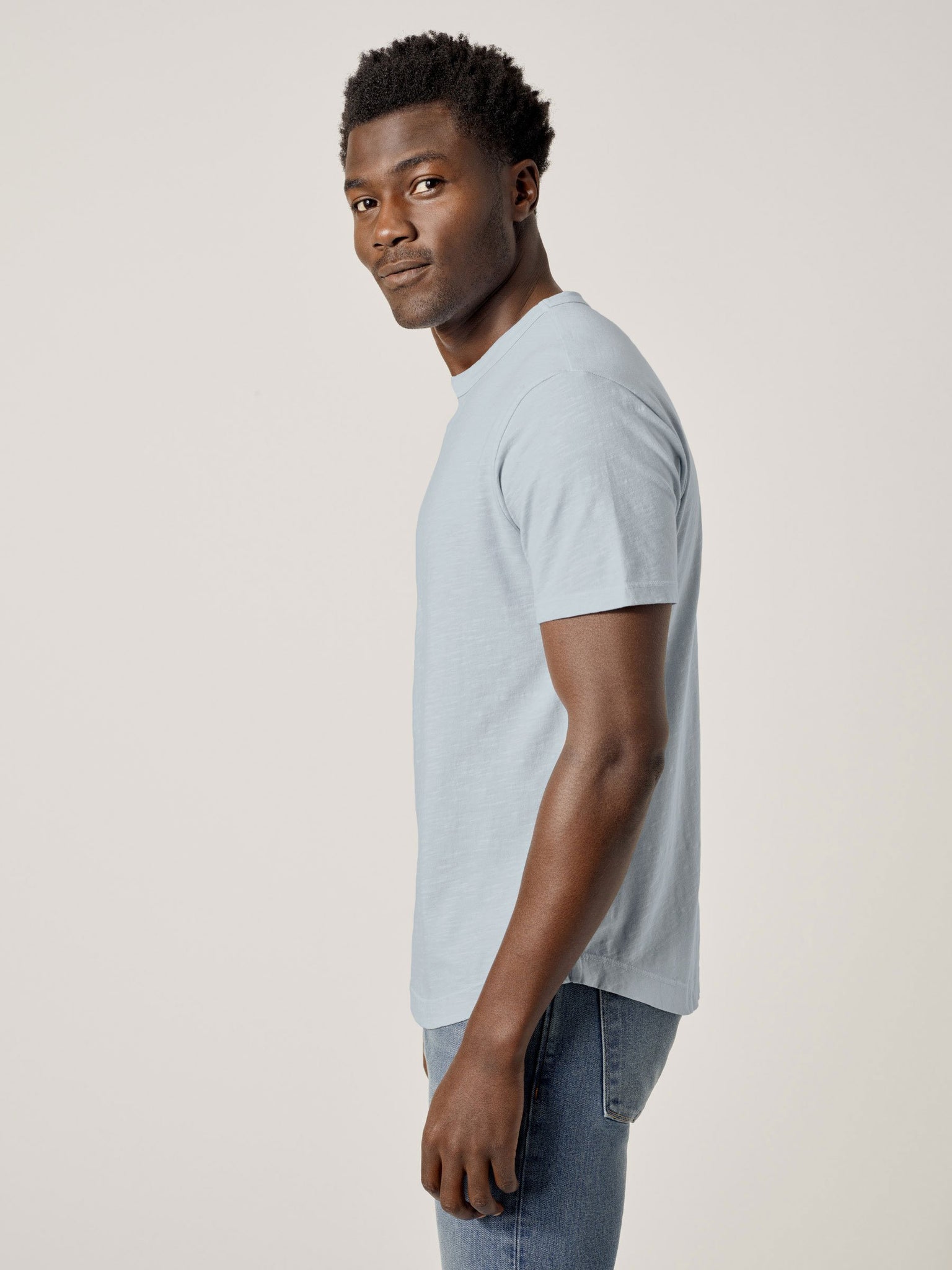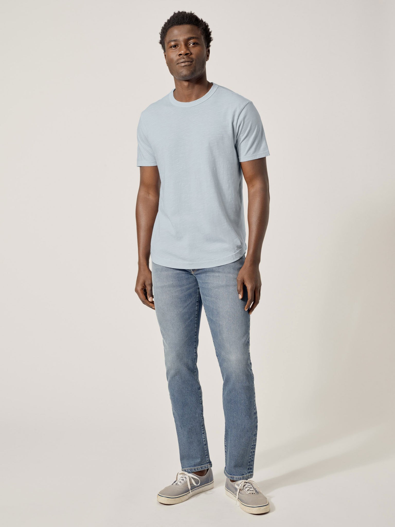 Our slub curved hem tee is built from beautiful 100% slub cotton. Slub is a lightly textured fabric made on small batch, low-tension looms. The neck opening leaves room to breathe, while the rounded shirttail lends a tailored look to an everyday essential.